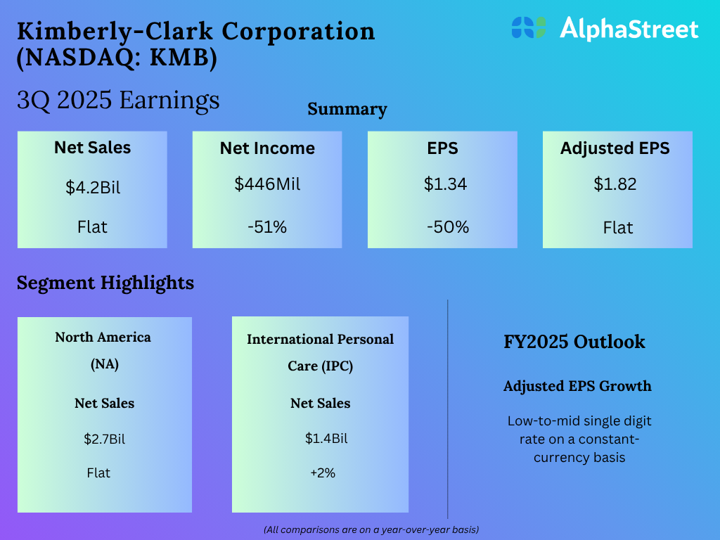 Kimberly-Clark Corporation (NASDAQ: KMB) reported its third quarter 2025 earnings results today. Net sales of $4.2 billion were in line with the prior year. Organic sales increased 2.5%. Net income at...